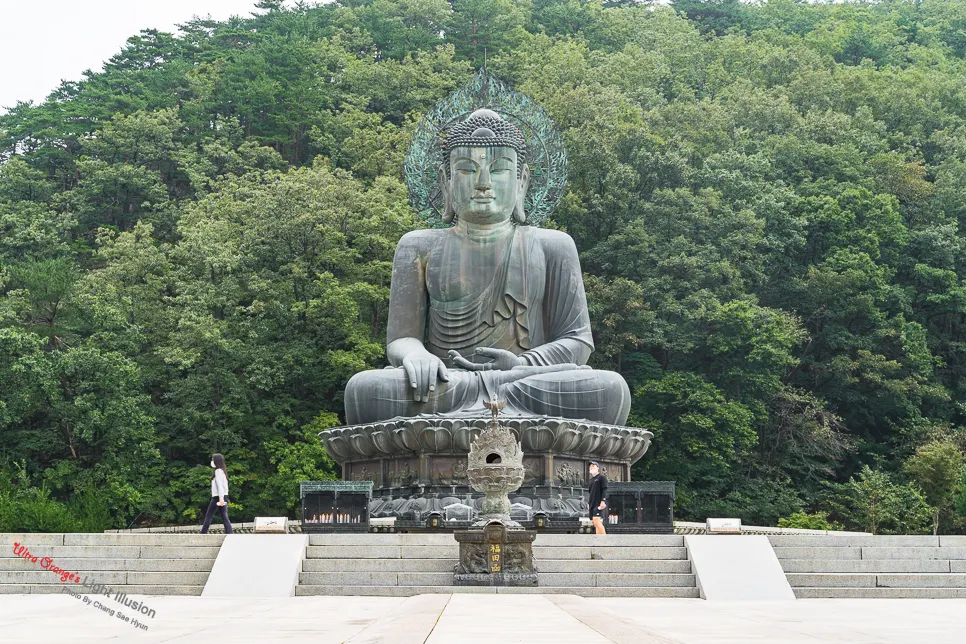 케이블카를 타고 권금성 정상에 올라 아찔한 낭떠러지도 보고 또 저 멀리 동해바다도 보고 내려오면 다음은 높이 14.6m의 세계 최대 청동좌불상인 통일대불을 볼 수 있습니다.