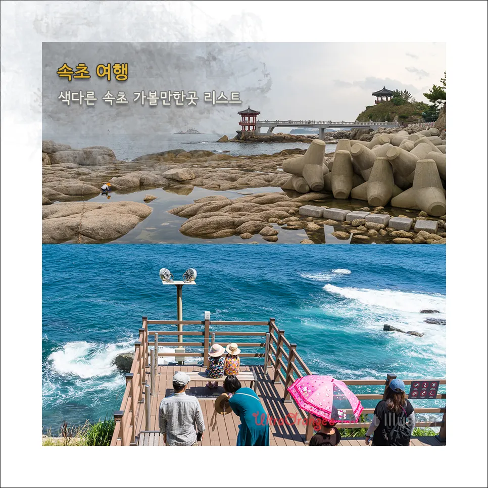 서울에서 약 두 시간 반 정도만 달리면 짙푸른 동해 바다를 볼 수 있기에 작년에만 서너 번 이상은 속초를 방문한 것 같습니다. 오늘은 지난 여행들을 정리하는 차원에서 얼마 전 소개했던 장소들을 빼고 속초 외옹치항 둘레길을 비롯한 새로운 강원도 속초 가볼만한곳을 소개해 볼까 합니다.