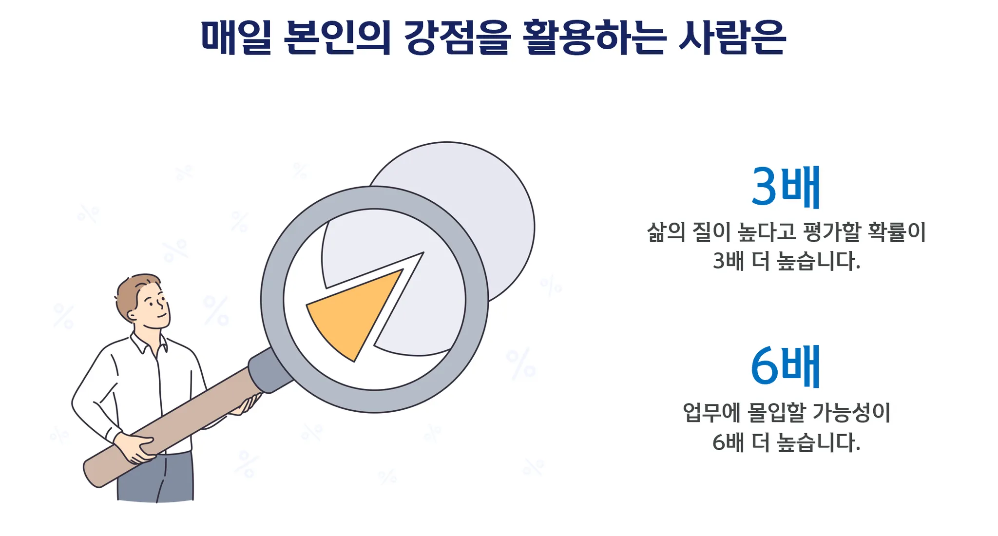 우리는 강점을 활용할 때, 행복하게 더 많은 성과를 낼 수 있습니다