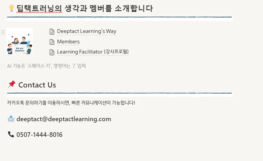 우리 회사 이름은 Deeptact Learning ← full name으로 표현되거나, 길면 About Us로 해도 됩니다~