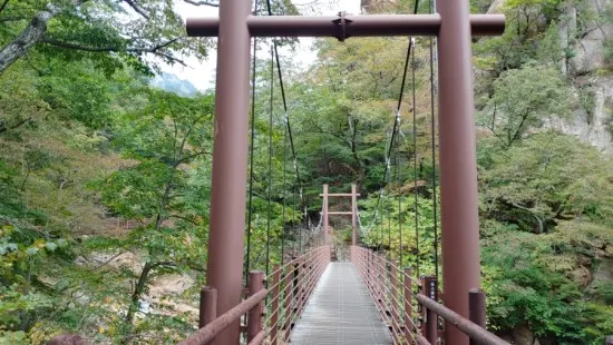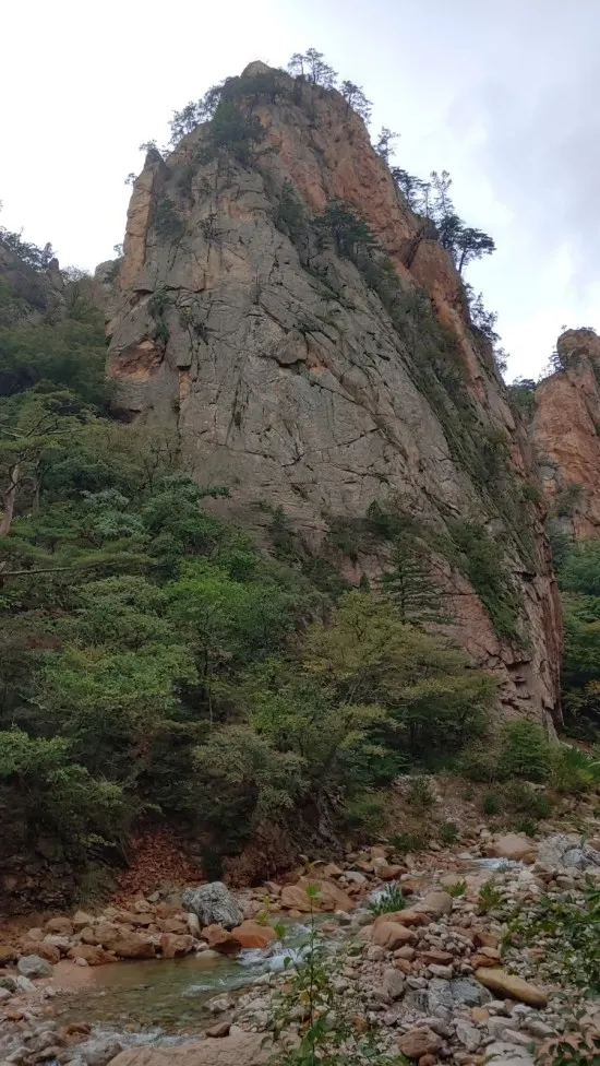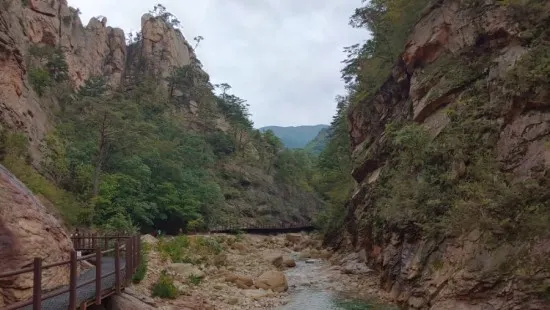 길을 따라 걸으면 물소리가 시끄러울 정도로 우렁찹니다. 계곡물 소리와 푸른 나무, 가파른 절벽을 벗삼아 트래킹을 즐깁니다.