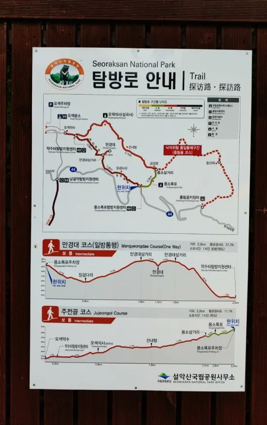 주전골 코스로 올라와서 만경대 코스로 내려가야만 하는거죠