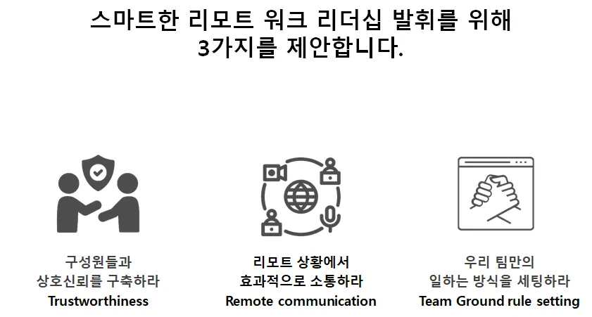 스마트한 리모트 워크 리더십 발휘를 위해 3가지를 제안합니다.