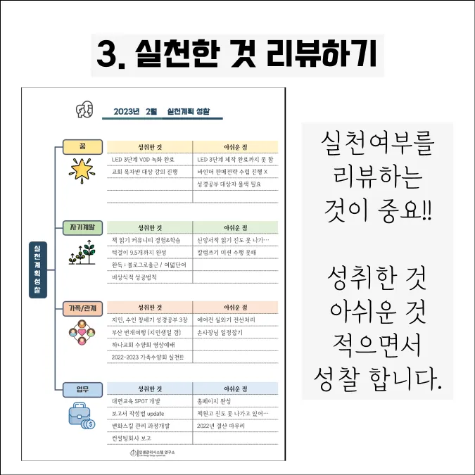 월 말이 되면, 월 초에 세웠던 '월실천계획'을 어느 정도 실천했는지 리뷰해봅니다.