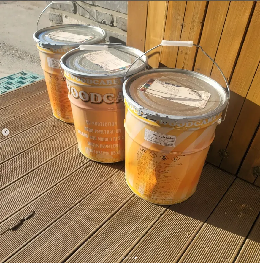 다음 단계는 데크에 오일스테인 칠하기다. 음... 그래서 일단 오일스테인 3통부터 구입했다. 지금 대문 앞에 똭 놓여있어서 아침 저녁으로 보고 있다. 곧 바르게 될 것이다.