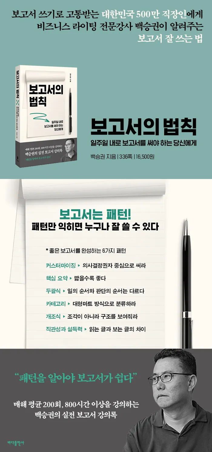 대한민국 NO.1 비즈니스 라이팅 강사 백승권의 실전 보고서 강의록 이론과 실재를 겸비한 보고서의 교과서