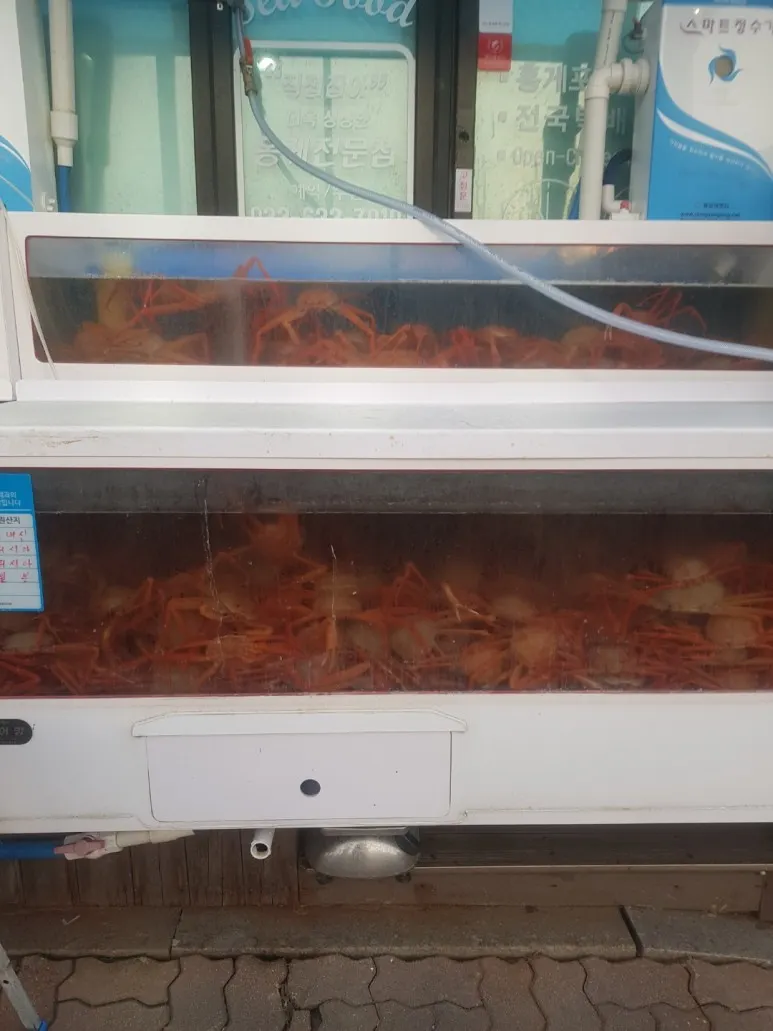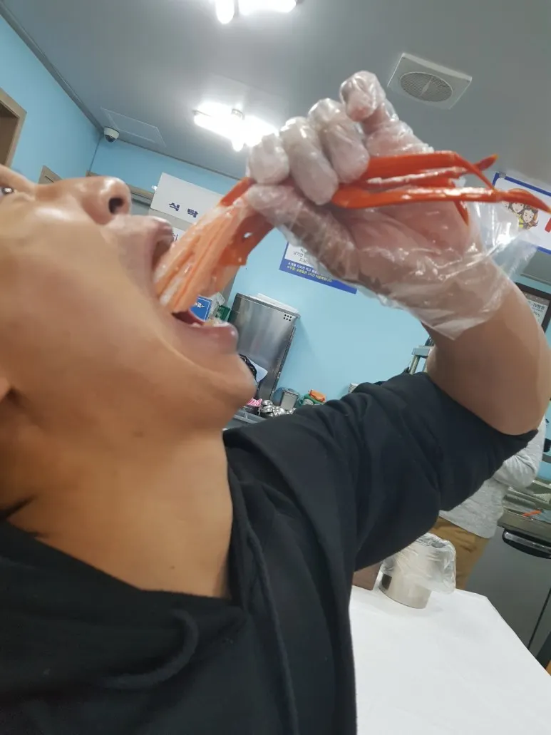 처음에는 홍게를 저렇게 살나오게 까는게 힘들어서 가위로 짜르고 이빨로 부셔서 빨아먹고